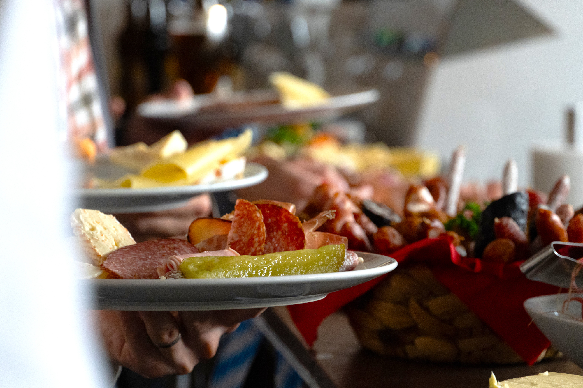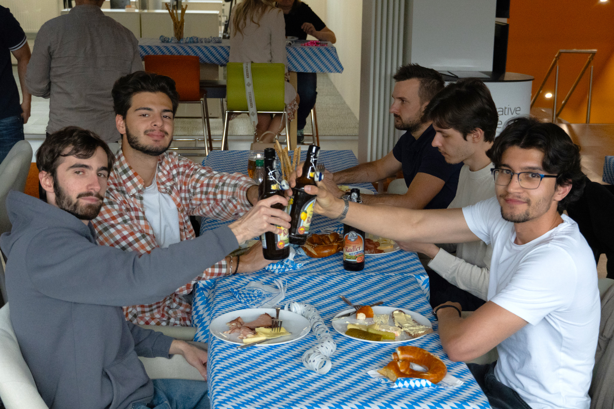 Der Abend begann für unsere Unternehmensgruppe mit einem gemütlichen Beisammensein an der Coffeebar. Bei Leberkäse, Brot, Aufschnitt und verschiedenen Käsesorten kamen wir in entspannter Runde zusammen, lachten viel und stimmten uns auf das Fest ein.